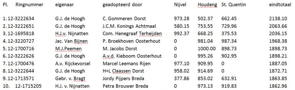 Eindstand Actie P.V. de Olijftak Adopteer een duif voor stichting PIM
