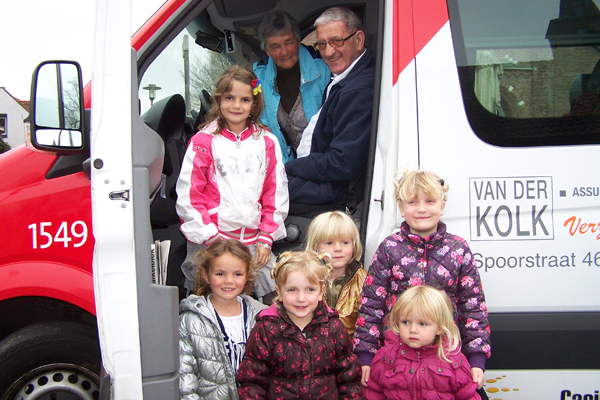 Piet en Corrie en de zes kleinkinderen zijn thuis met de buurtbus opgehaald en vervolgens is een gedeelte van de route naar Oosterhout en terug naar Molenschot gereden. Terug in Molenschot hadden de kinderen van Piet en Corrie en alle vrijwillige chauffeurs en partners zich verzameld voor de kerk in Molenschot, waar Piet onder groot applaus werd ontvangen.
