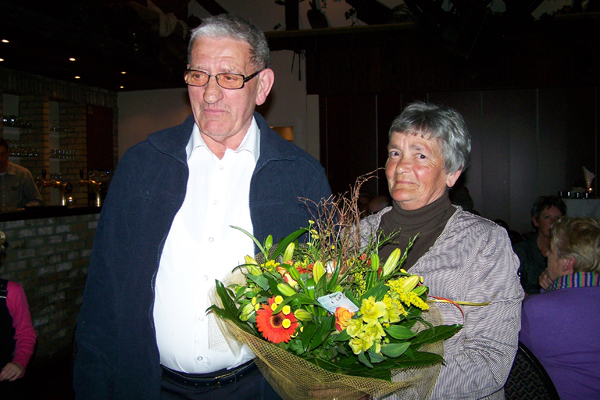 Piet is een bijzonder mens. De voorzitter bracht in zijn toespraak een aantal leuke anekdotes voor het voetlicht. Een mooie staat van dienst die beloond werd met de bekende enveloppe (pensioen) en een mooi boeket bloemen. De buurtbus bestaat 21 jaar en heeft in al die jaren met 23 vrijwillige chauffeurs bijna 300.000 passagiers vervoerd en ruim 2.000.000 kilometer gereden.
