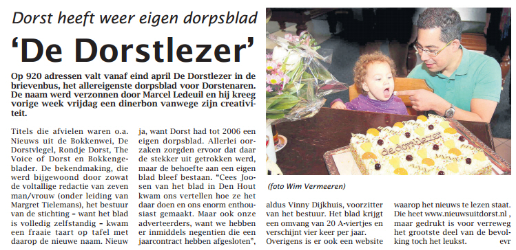 Al snel werd het plan opgevat om o.a. een Nieuwsblad op te zetten, vóór en dóór de mensen uit Dorst.