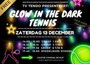 TV Tendo organiseert Glow in the dark tennis in de gymzaal bij dorpshuis De Klip.