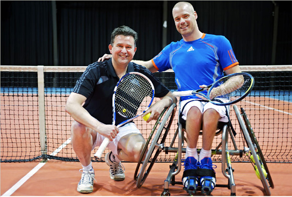Maikel Scheffers en Emile Roemer speelden vrijdagochtend een potje tennis tegen elkaar in Vught. De rolstoeltennisser uit Dorst nam het op tegen de leider van de SP-fractie in de Tweede Kamer nadat ze in december hadden kennis gemaakt bij het gala van sportkoepel NOC*NSF. Scheffers greep daar naast de prijs voor Gehandicapte Sporter van het Jaar.