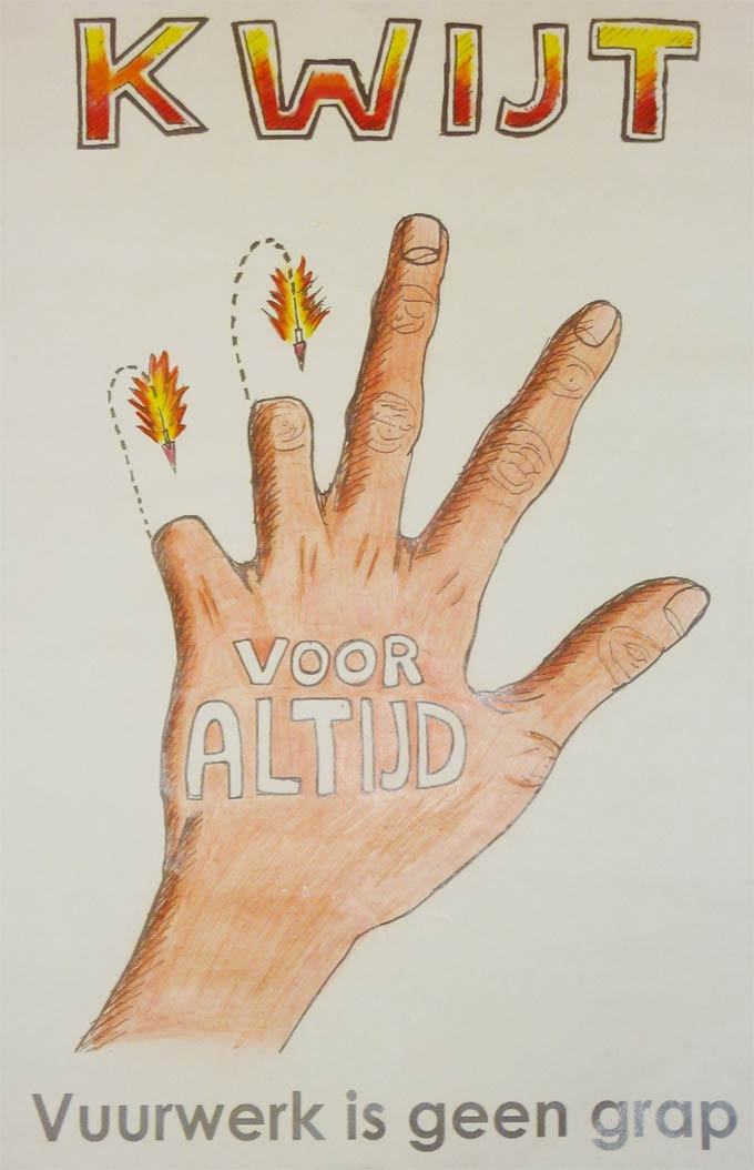 Leerlingen van Effent, het Hanze College, het Mgr. Frencken College en het Sint-Oelbert Gymnasium hebben allemaal een poster ontworpen voor deze campagne. De winnende poster is gemaakt door Gijs Boer uit klas 3C van het Sint-Oelbertgymnasium. Deze poster werd tot beste ontwerp gekozen en wordt straks door heel Oosterhout verspreid. Afgestoken vuurwerk zorgt niet alleen voor veel rommel op straat, maar is ook een gevaar voor kinderen. Een kwart van alle vuurwerkongevallen gebeurt doordat zij op zoek gaan naar niet geknald vuurwerk en proberen dit alsnog af te steken. De laatste jaren was de schade groot en dat bracht aanzienlijke kosten met zich mee, vooral voor herstelwerkzaamheden aan vernielde gemeentelijke eigendommen.